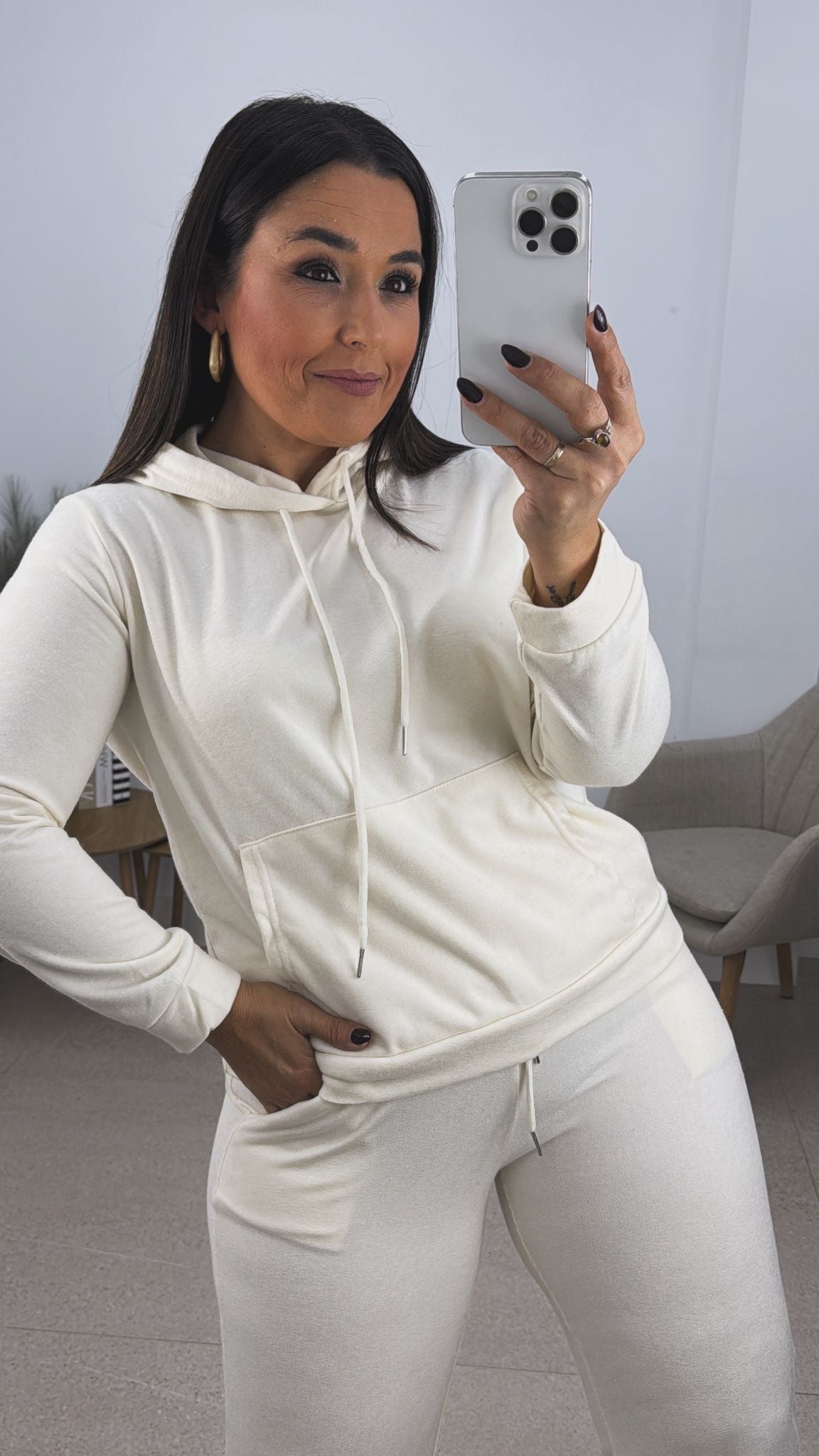 - sudadera: 57 cm de sisa estirada / 63 cm de largo