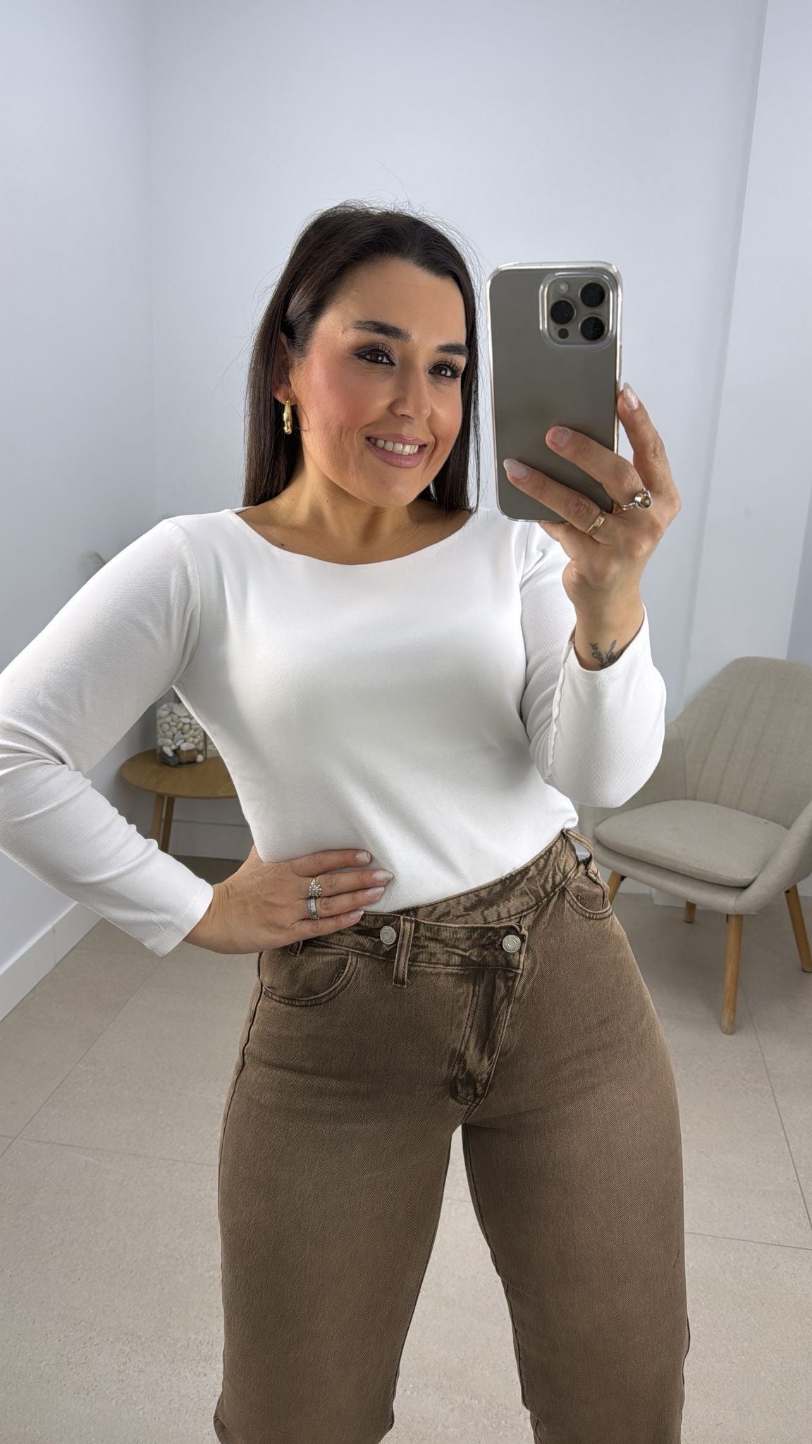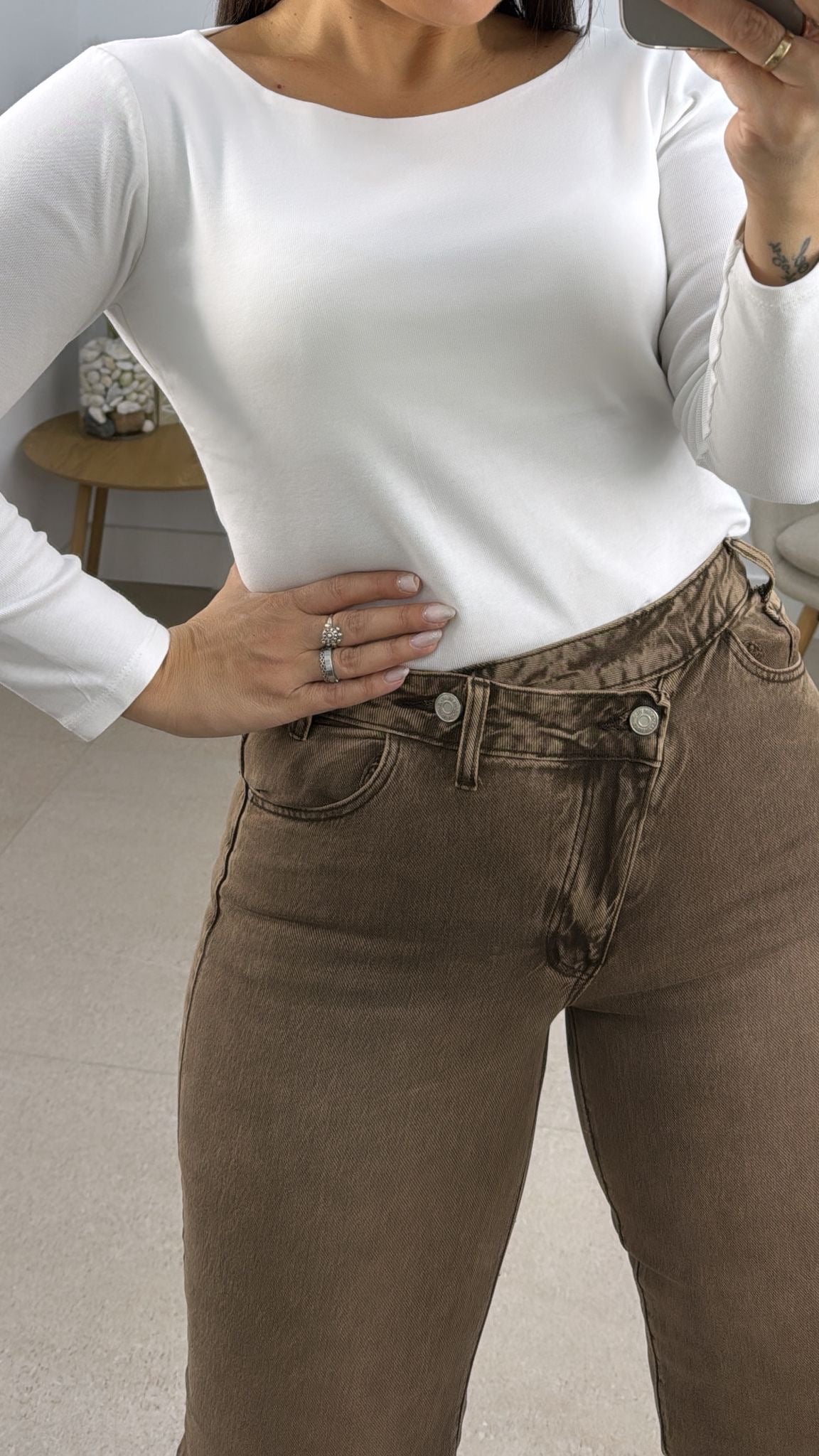 Pantalon vaquero cruzado marron