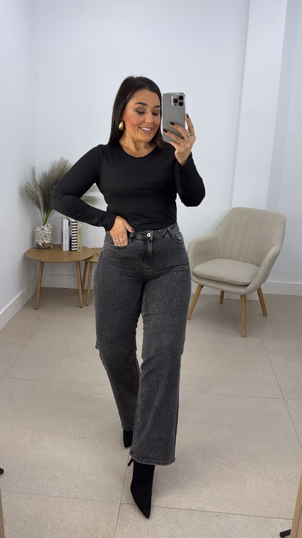 Pantalon vaquero gris brillos