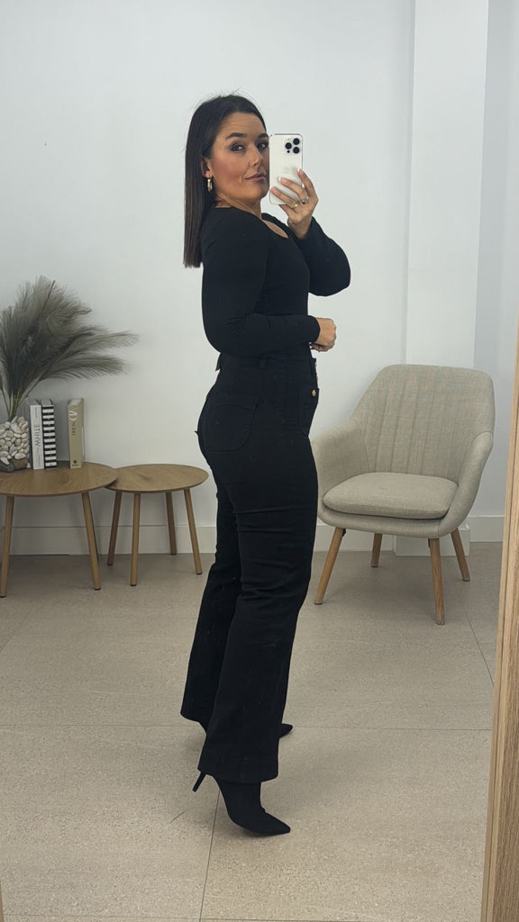 Pantalon bolsillos costura negro
