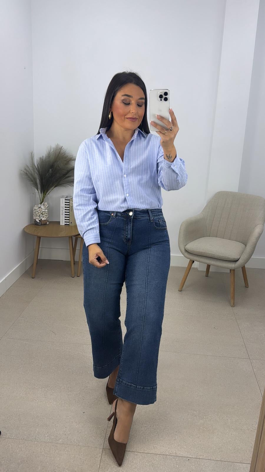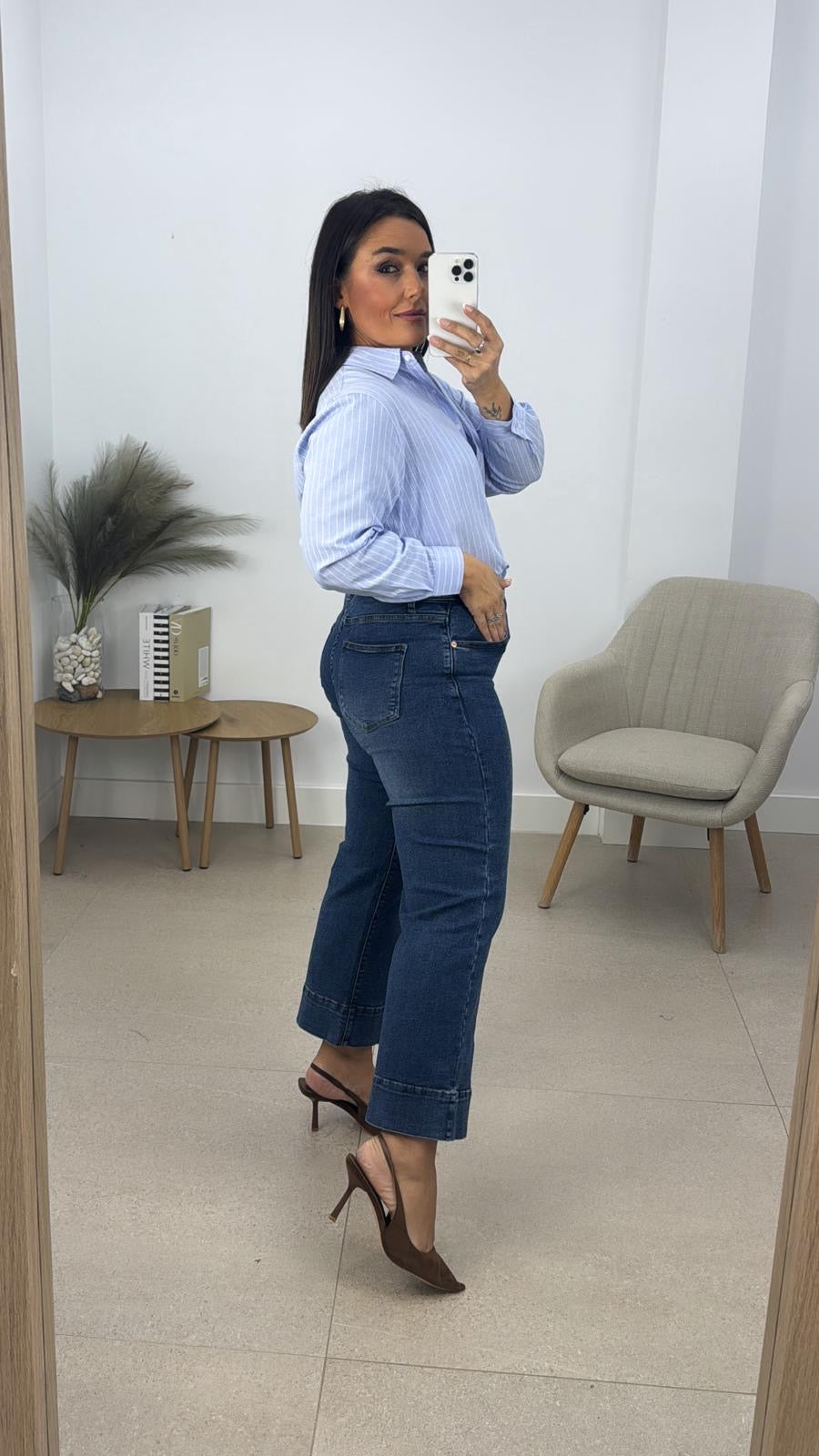 Pantalon vaquero costura crop