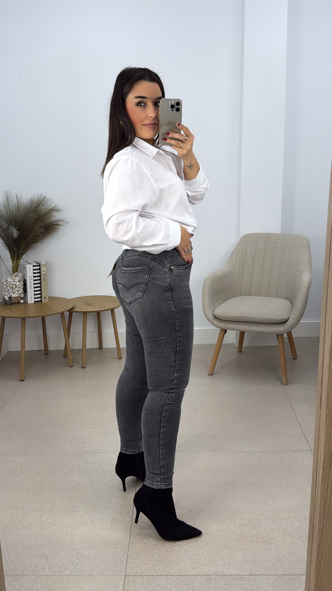 Pantalon vaquero faja pitillo gris